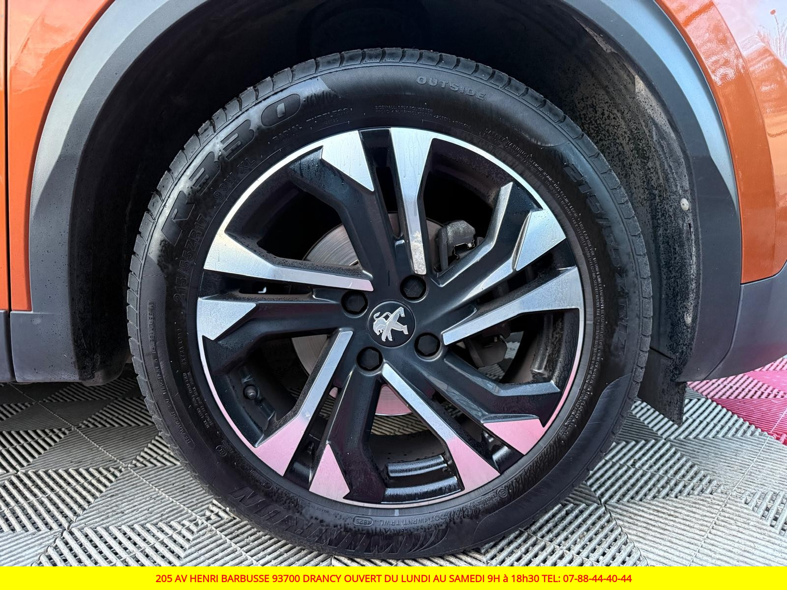 Volant compact croute de cuir, Lion chromé et commandes multimédia sur volant